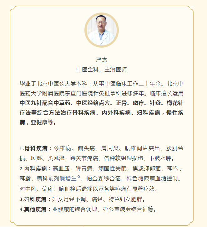 专长:肛瘘,Ⅱ期、Ⅲ期肛裂、肛周脓肿及痔疮